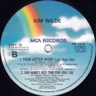 For collector the amount of different pressing is not so large. The single was released on 7” and 12” vinyl and CD-single. On the Japanese CD-single Kim Wilde is named Kim Wild. A numbered limited edition 7” box set of the single was released in UK and contains the 7” vinyl and a calendar. There are three versions of “Four Letter Word”, the album version, an extended version and the Late Night Mix. In 2006 Kim re-recorded the song for her album “Never Say Never”. A promotional video was filmed, directed by Michael Geoghegan.